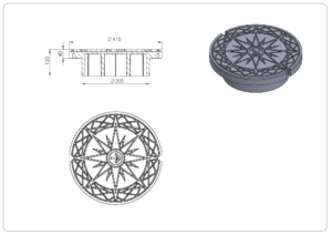 | INDEKS: T4/IT/300 | MASA [kg]: 9,5 | DŁUGOŚĆ B=B' [mm]: 370 | DŁUGOŚĆ C=C' [mm]: 330 | WYSOKOŚĆ H [mm]: 65 | WYSOKOŚĆ H1 [mm]: 50 | KLASA [kg]: 200 |