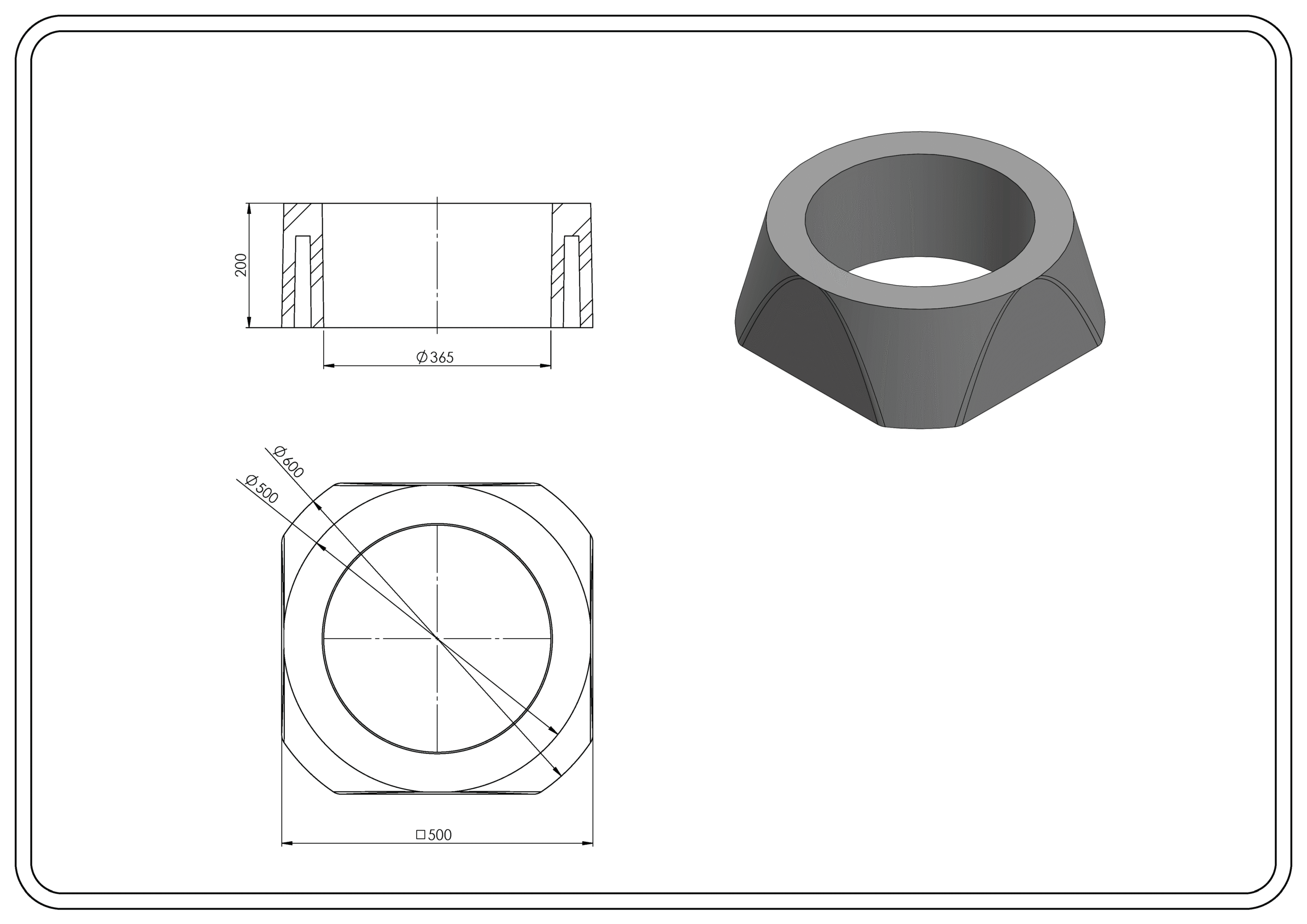 | INDEKS: T3/315/DK | MASA [kg]: 24,5 | ŚRED. WEW. Dn [mm]: 365 | ŚRED. ZEW. Dz [mm]: 600 | WYSOKOŚĆ H [mm]: 200 | KLASA [kN]: D400 |
