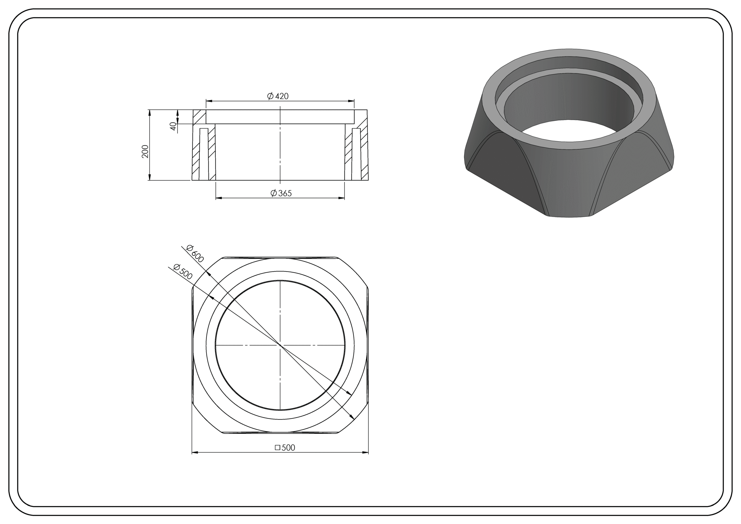 | INDEKS: T3/315/DKC | MASA [kg]: 22 | ŚRED. WEW. Dn [mm]: 365 | ŚRED. ZEW. Dz [mm]: 600 | WYSOKOŚĆ H [mm]: 200 | KLASA [kN]: 2kN (200kg) |