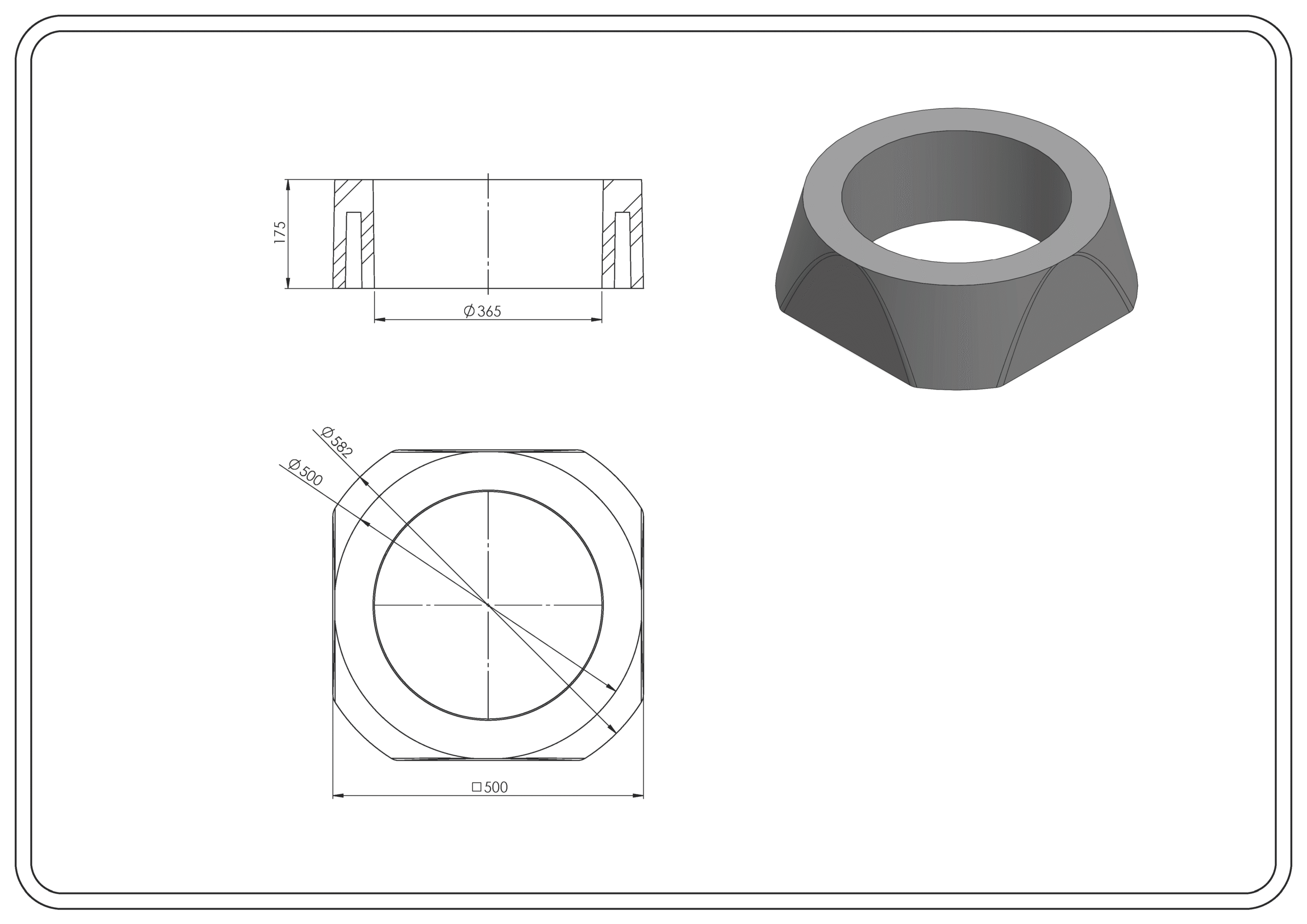 | INDEKS: T3/315/TL | MASA [kg]: 21,5 | ŚRED. WEW. Dn [mm]: 365 | ŚRED. ZEW. Dz [mm]: 582 | WYSOKOŚĆ H [mm]: 175 | KLASA [kN]: D400 |