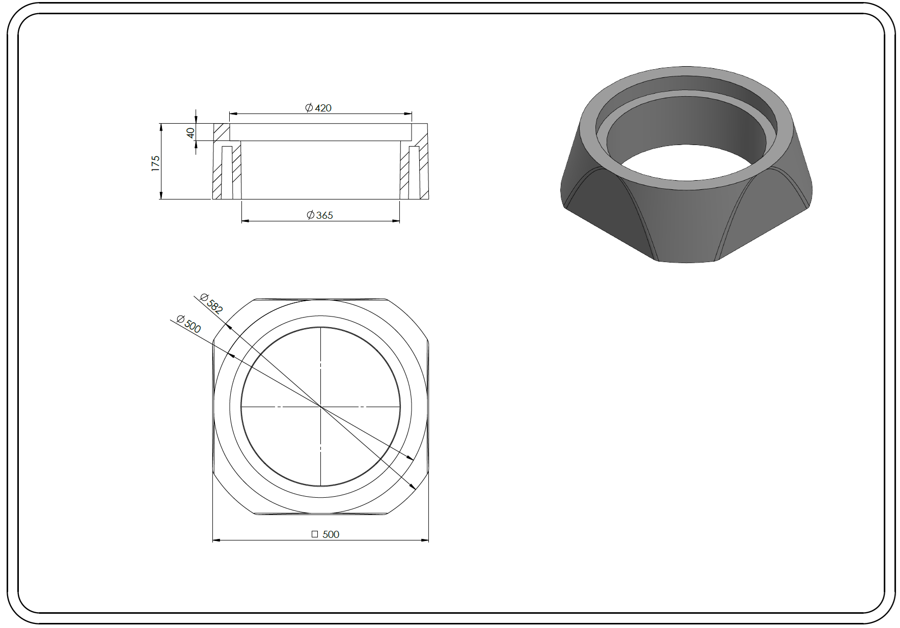| INDEKS: T3/315/TLC | MASA [kg]: 19 | ŚRED. WEW. Dn [mm]: 365 | ŚRED. ZEW. Dz [mm]: 582 | WYSOKOŚĆ H [mm]: 175 | KLASA [kN]: 2kN (200kg) |
